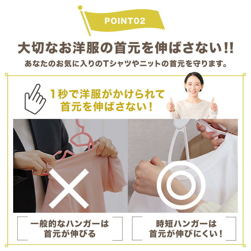 「もう、首元を伸ばさないようにハンガーを服の中に通す必要はありません!」